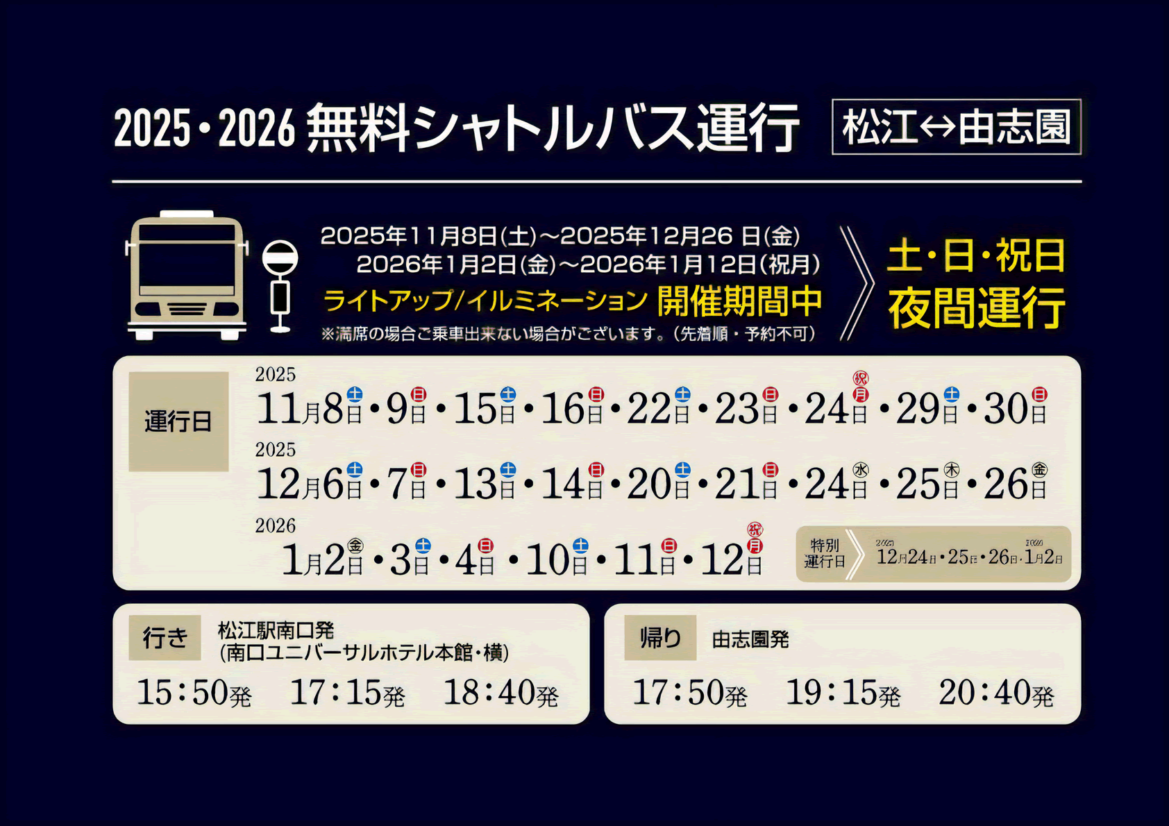 2025-26年 秋冬ライトアップ・イルミネーション カレンダー